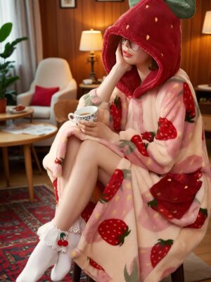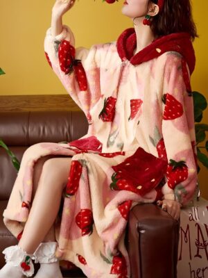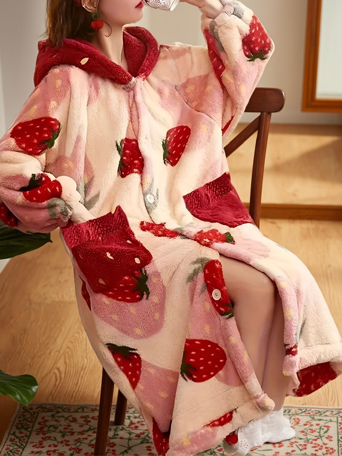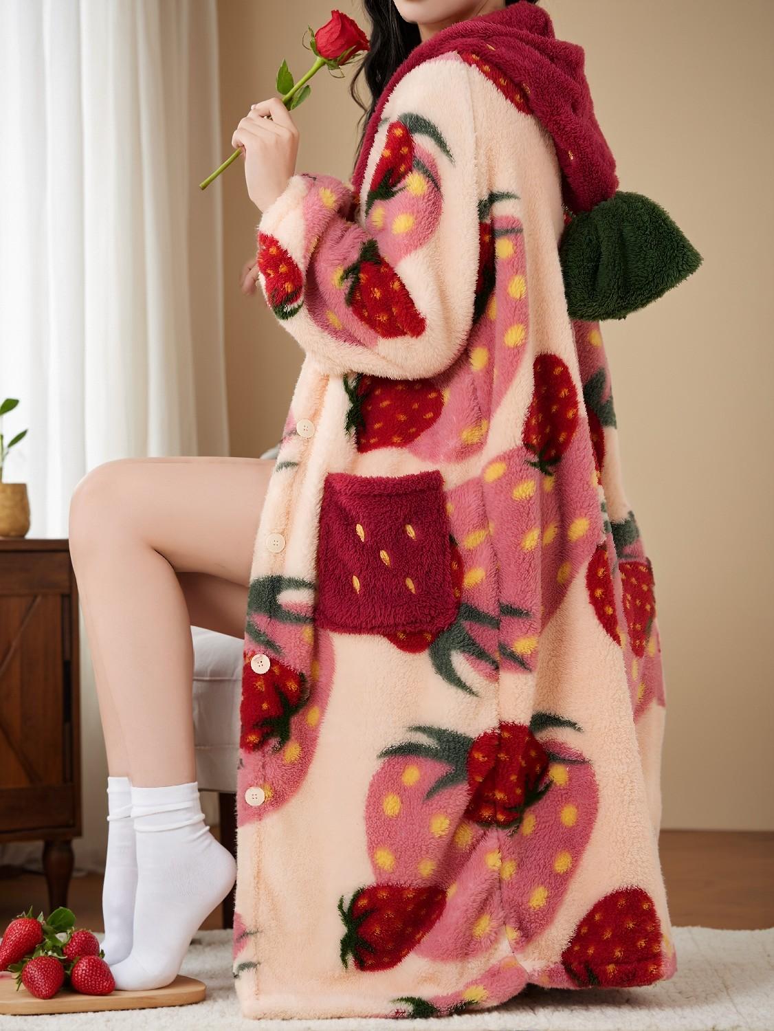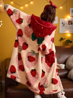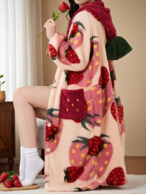 - Strawberry Hooded Casual Robe