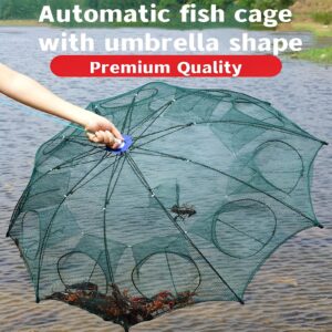 - Amazing Design! – Just pull the string and the net opens automatically, ready to go as soon as you get to your fishing spot! All you need to do then is place the trap in the water and the fish come to you. No effort required, maximum efficiency guaranteed! 6 sides with 6 holes. 35 inches / 90 cm in diameter.