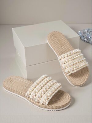 Introducing the Elegant Beige Women Flat Sandals, Charming Vintage Pearl Slides for Outdoor and Casual Valentine’s Celebrations. These cute and comfortable sandals blend aesthetic appeal with everyday utility, making them perfect for summer adventures, casual outings, and special events. With their classy and trendy design, adorned with luxurious pearls and rhinestones, these chic sandals are an essential addition to your wardrobe, ready to elevate your style for beach days, weddings, parties, or just lounging by the pool!