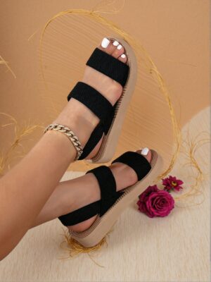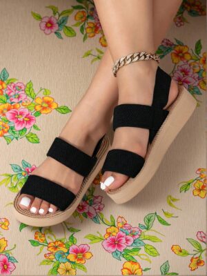 - Elegant black flat sandals with retro design