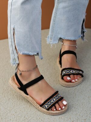 Introducing our Elegant Black Women Flat Sandals Featuring Fashionable Bohemian Style, Anti-Slip Design, and Elastic Comfort for Spring and Summer Fun. These sandals are a perfect blend of cute, comfortable, and aesthetic charm, designed for the modern woman. With their classy and trendy appeal, they’re ideal for casual outings, beach trips, and summer vacations. The luxurious and stylish finish makes them suitable for every occasion, whether you are headed to a wedding, party, or just relaxing at home!