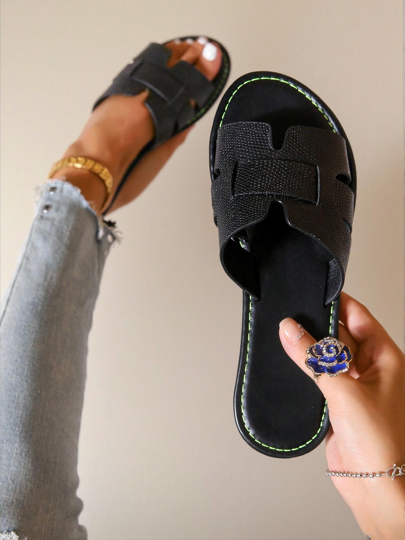 - Elegant black flat sandals for women