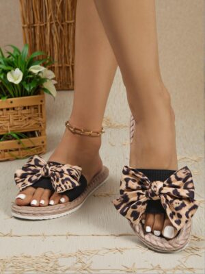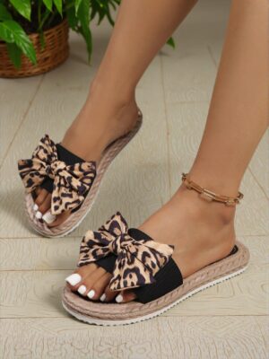 Elegant Black Women Flat Sandals with Bow Detail, Open Toe Slip-On Summer Slides, Non-Slip...