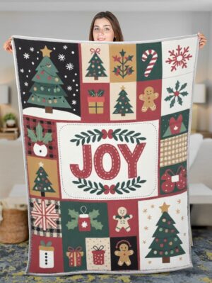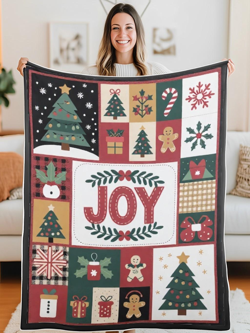Elegant Christmas Quilted Blanket – Festive Holiday Cheer with Rustic Ornaments, Pine Cones,...