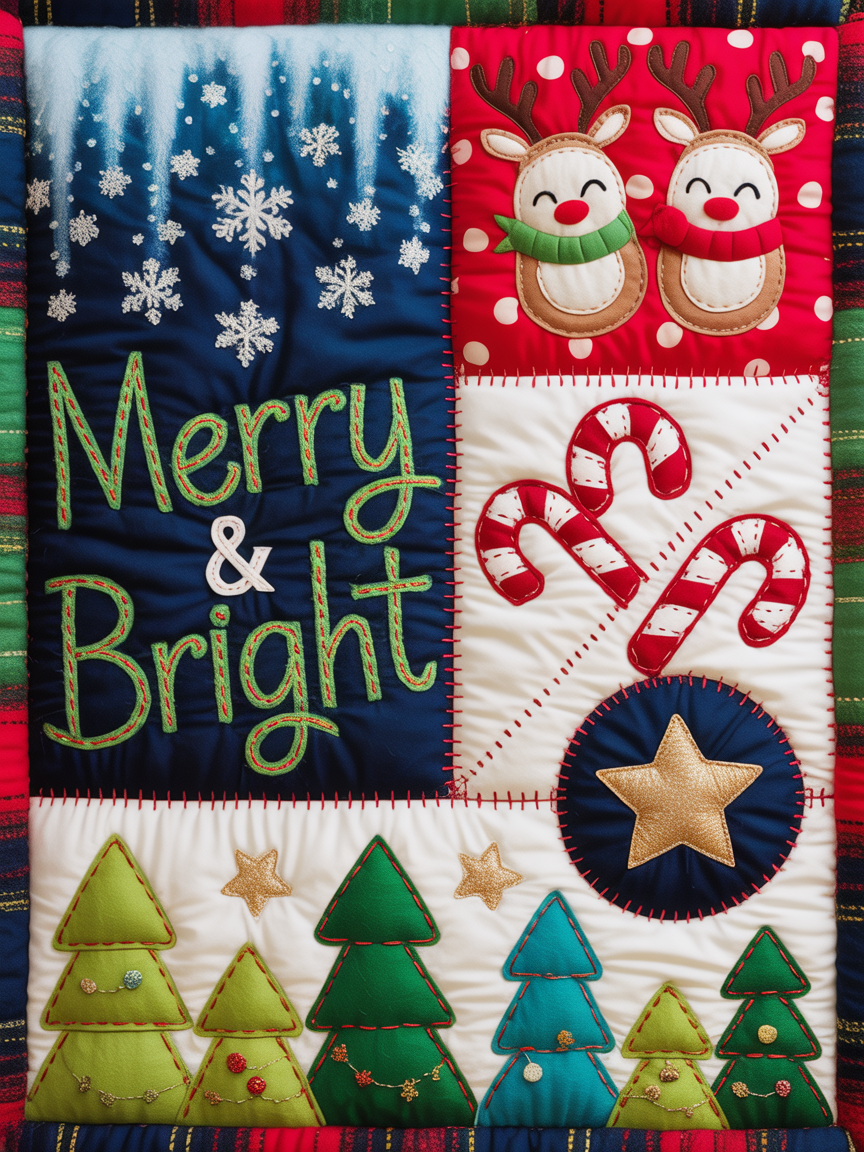 Elegant Christmas Quilted Blanket – Festive Snowflakes, Friendly Reindeer, Whimsical Candy...