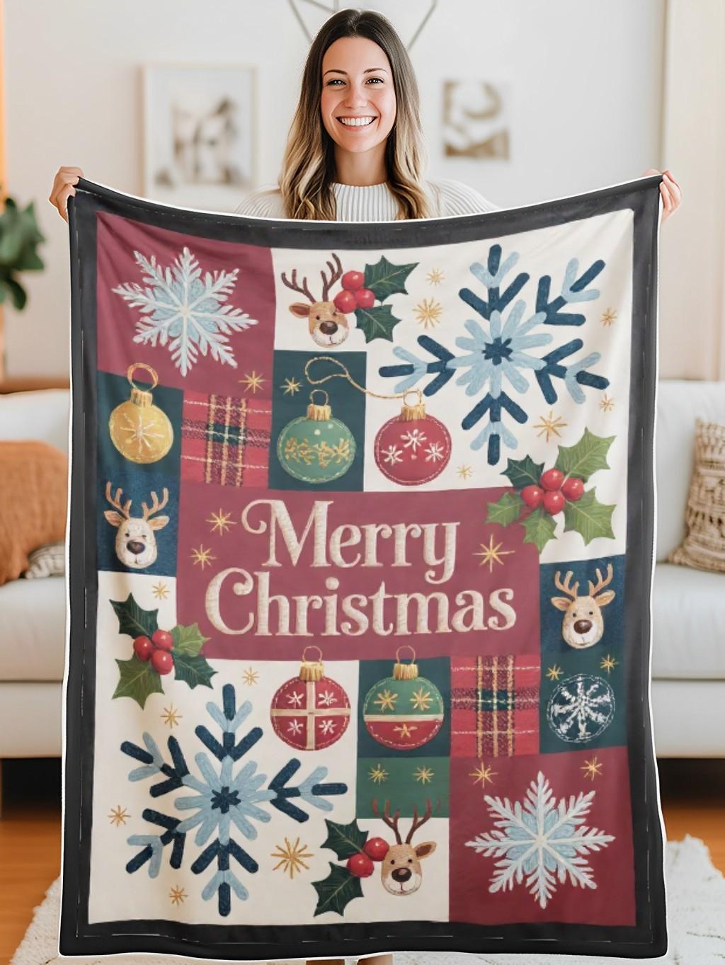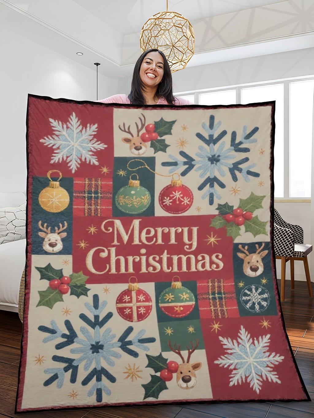 - Quilt blanket featuring a beautiful Christmas design