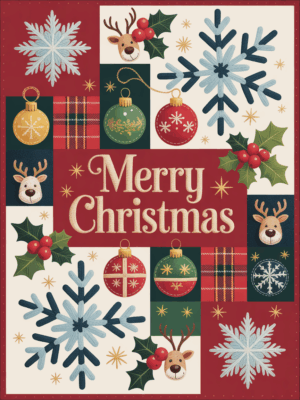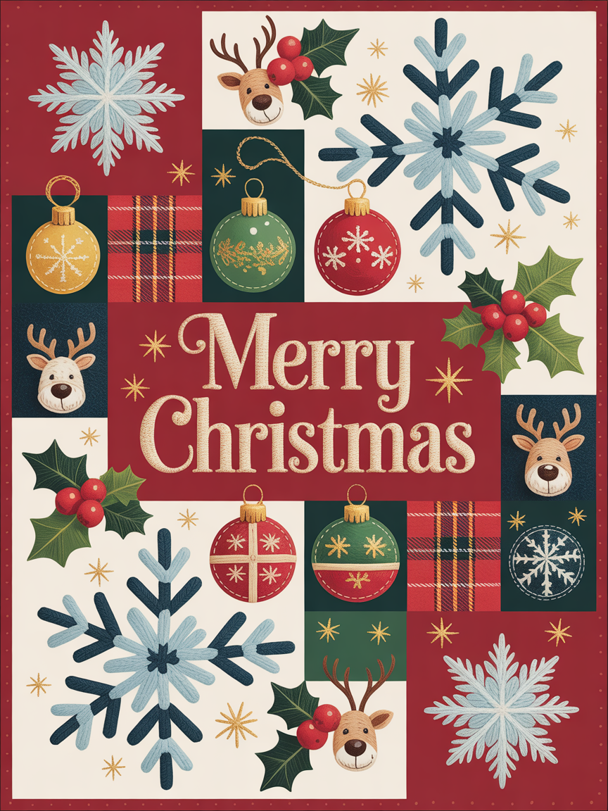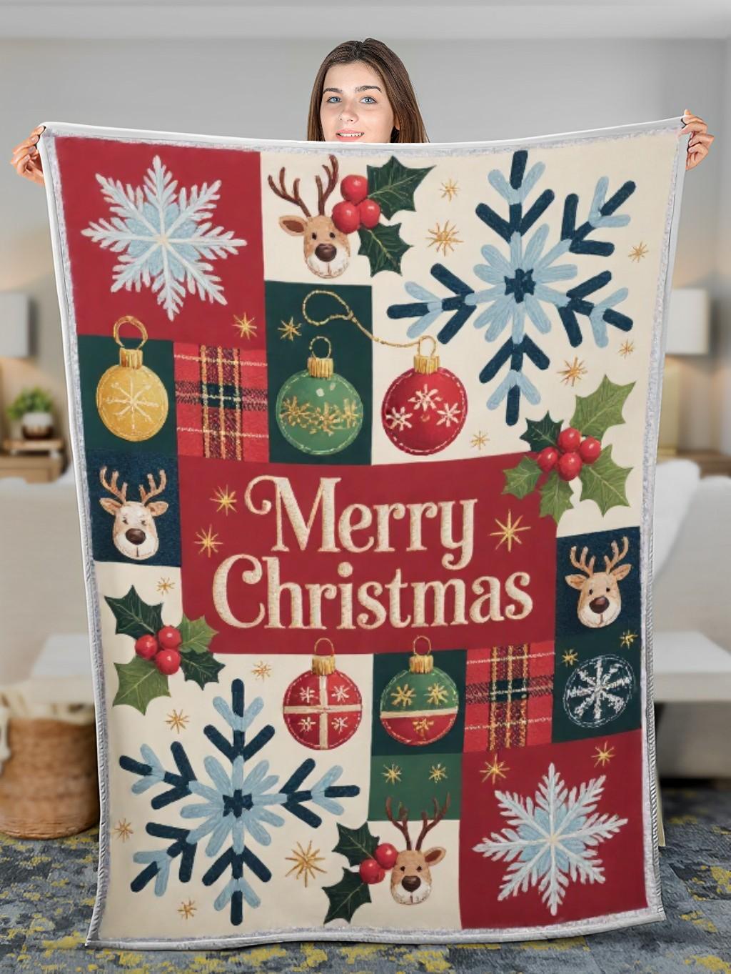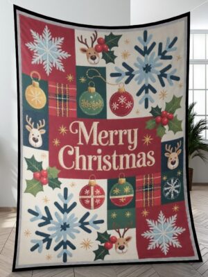 Elegant Christmas Quilted Blanket – Whimsical Snowflakes, Festive Ornaments, and Oversized...