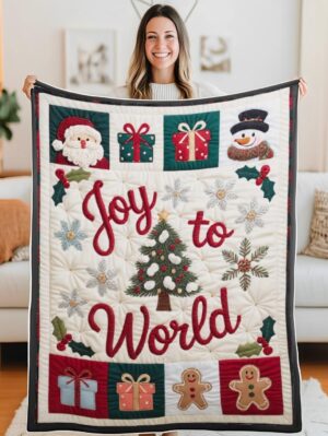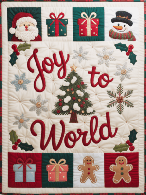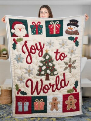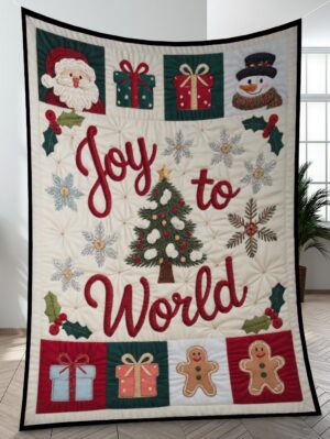 Elegant Christmas Quilted Blanket – Whimsical Winter Wonderland with Festive Embroidered...