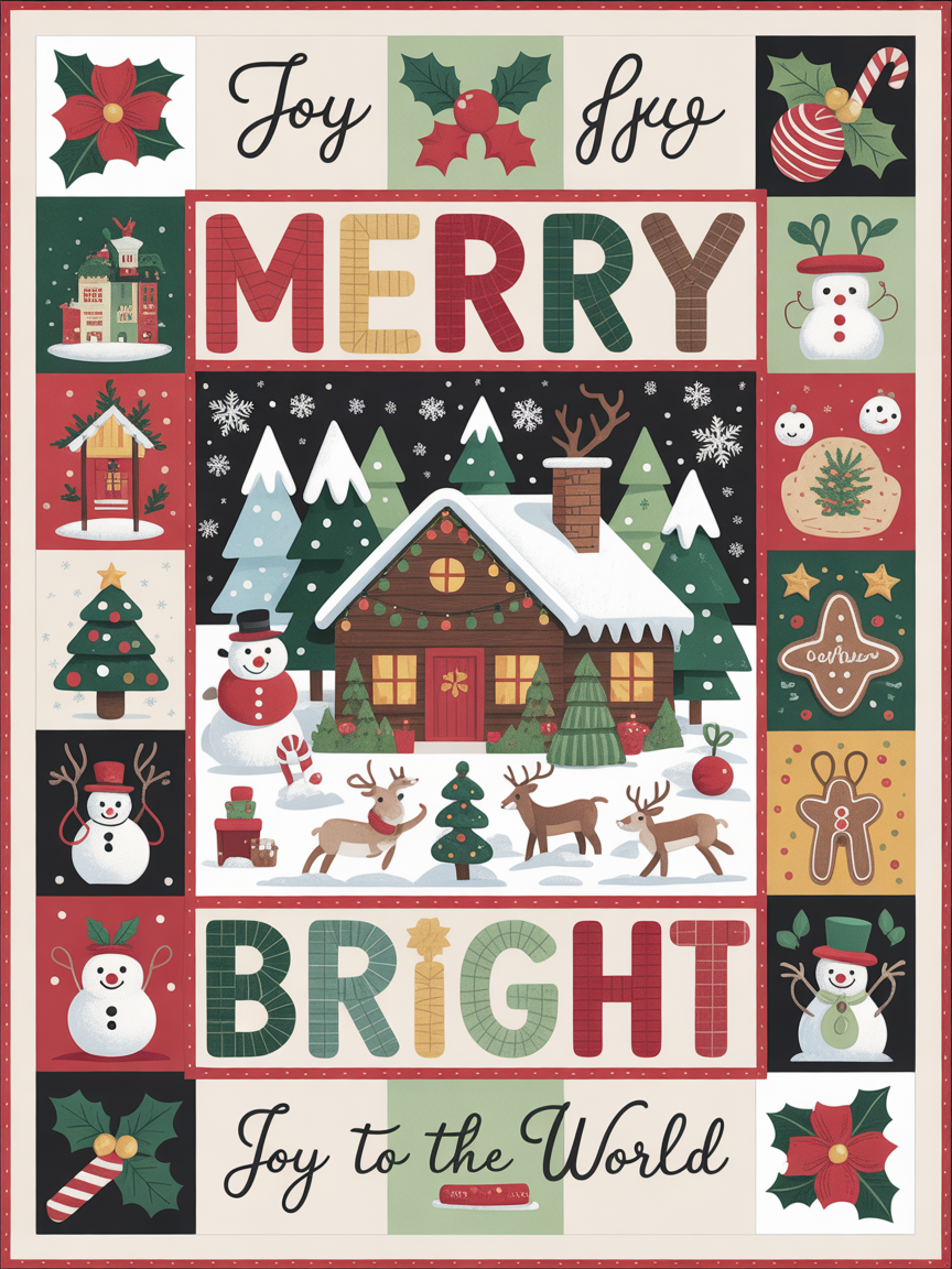 Elegant Christmas Quilted Blanket – Whimsical Winter Wonderland with Festive Iconography,...