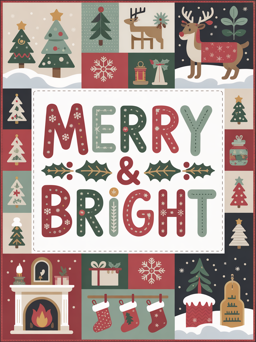 Elegant Christmas Quilted Blanket – Whimsical Winter Wonderland with Oversized Stitched Text...