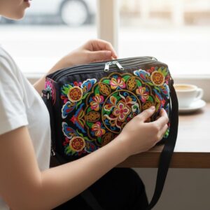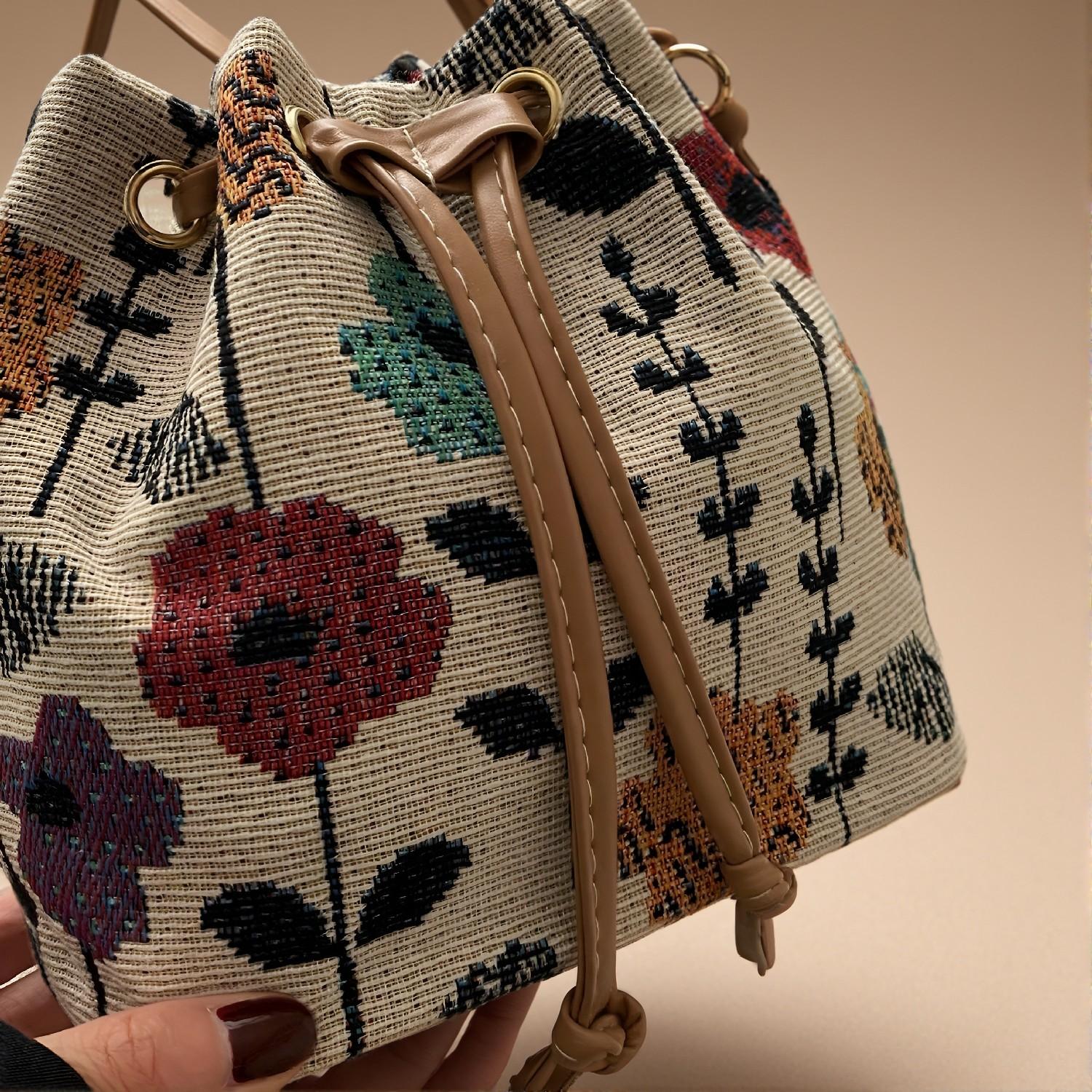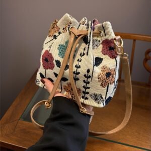 Benefits of the Elegant Floral Pattern Women’s Bucket Bag – Ethnic Style Handbag with Zipper Closure, Suitable for Travel And Work :