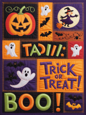 - Quilt blanket featuring a beautiful Halloween design