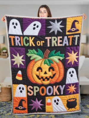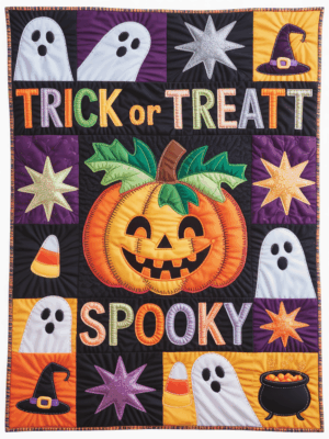 - Quilt blanket featuring a beautiful Halloween design