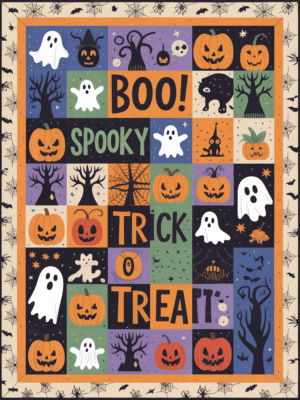 Elegant Halloween Quilted Blanket – Spooky Night Sky, Whimsical Pumpkins, and Playful Ghosts...