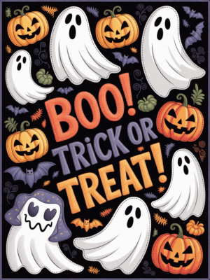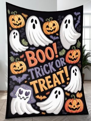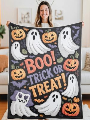Elegant Halloween Quilted Blanket – Spooky Night with Oversized Ghosts, Jack-o’-Lanterns,...