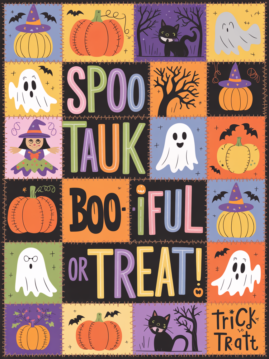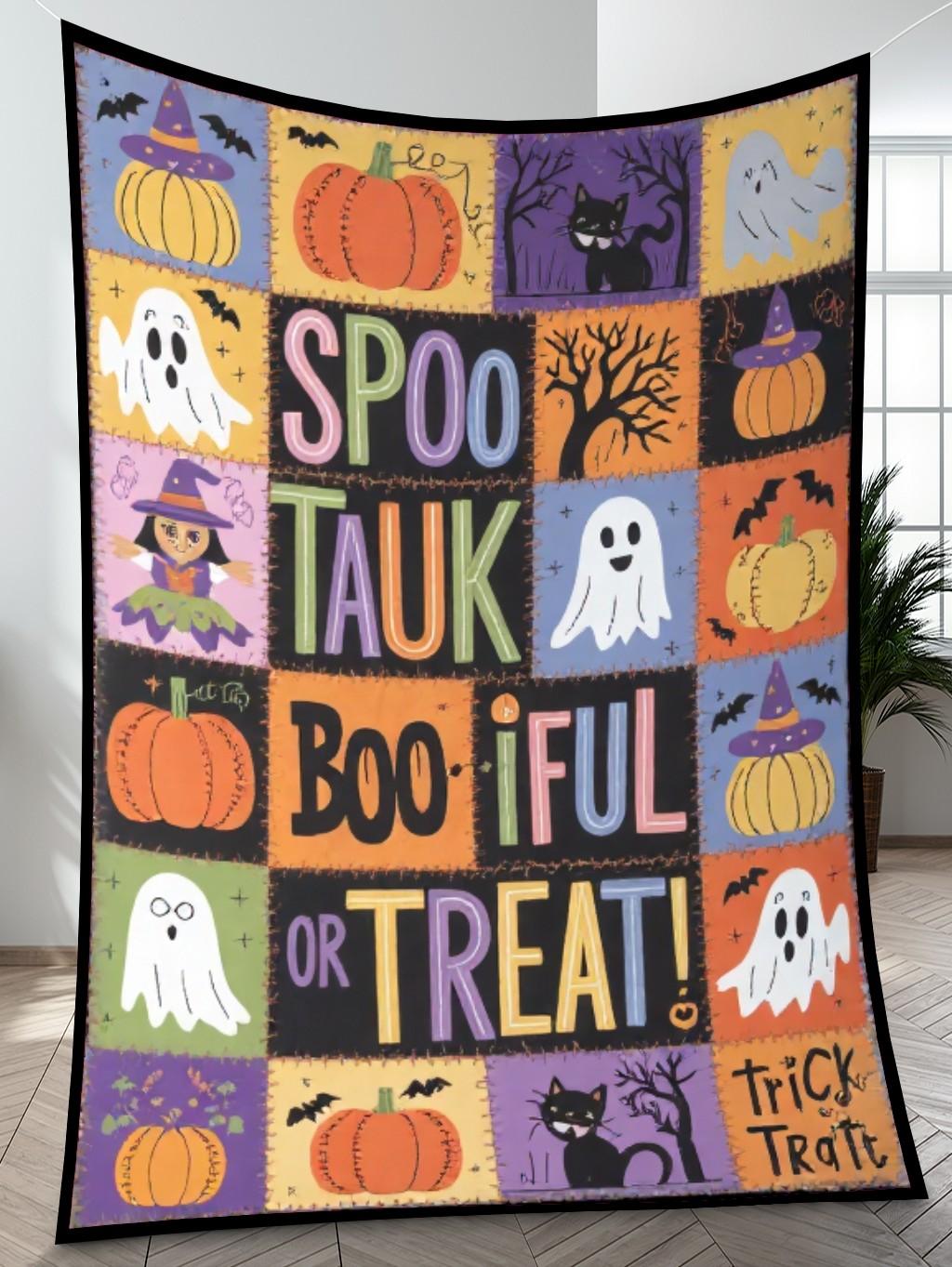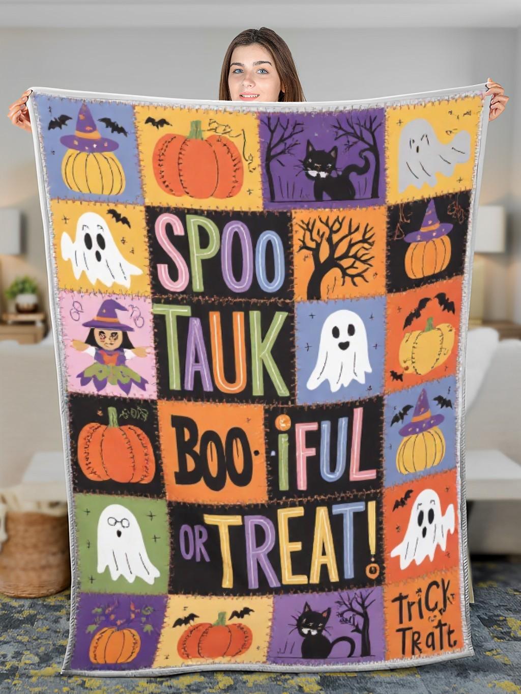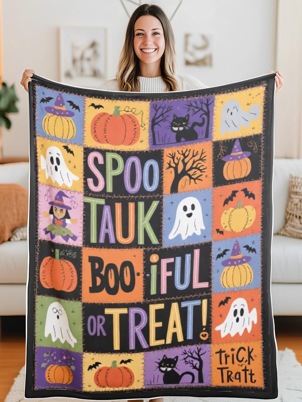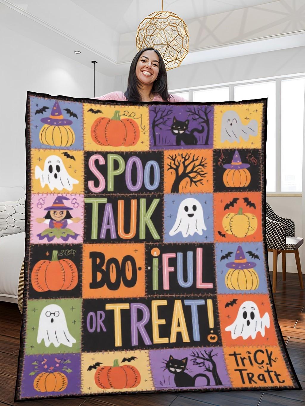 - Quilt blanket featuring a beautiful Halloween design