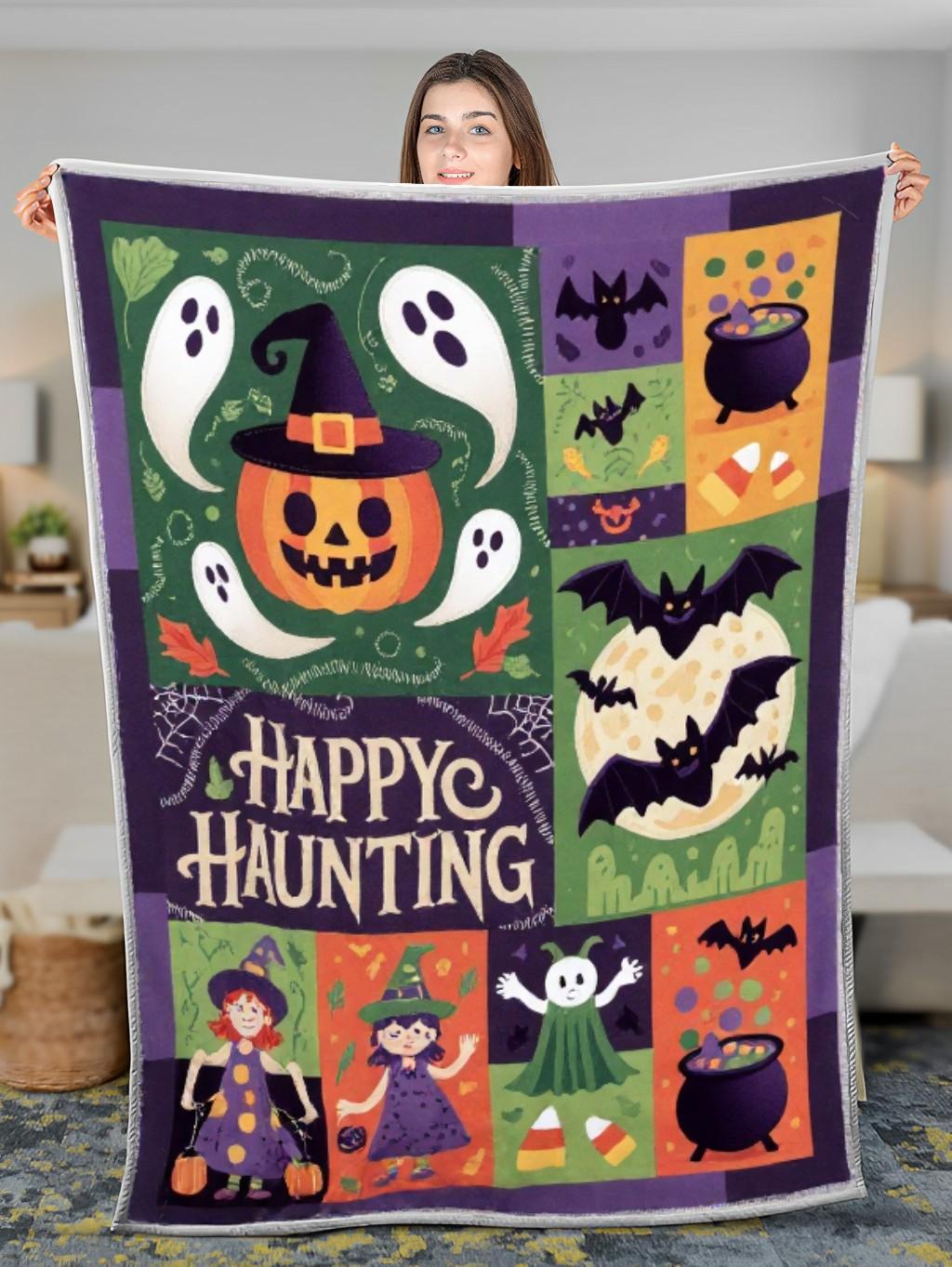 - Quilt blanket featuring a beautiful Halloween design