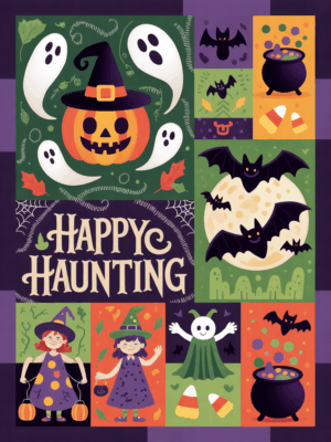 Elegant Halloween Quilted Blanket – Spooky Pumpkins, Bewitching Bats, and Oversized Whimsical...