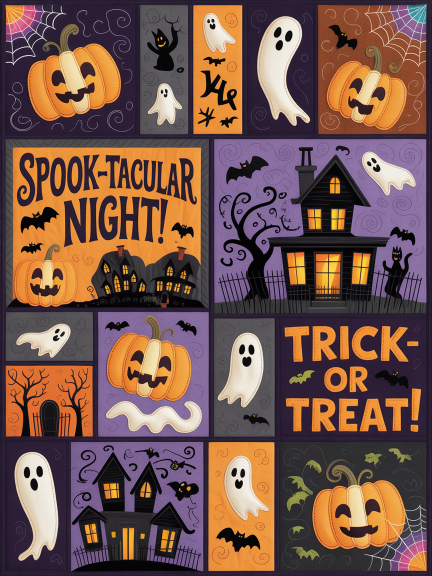 - Quilt blanket featuring a beautiful Halloween design
