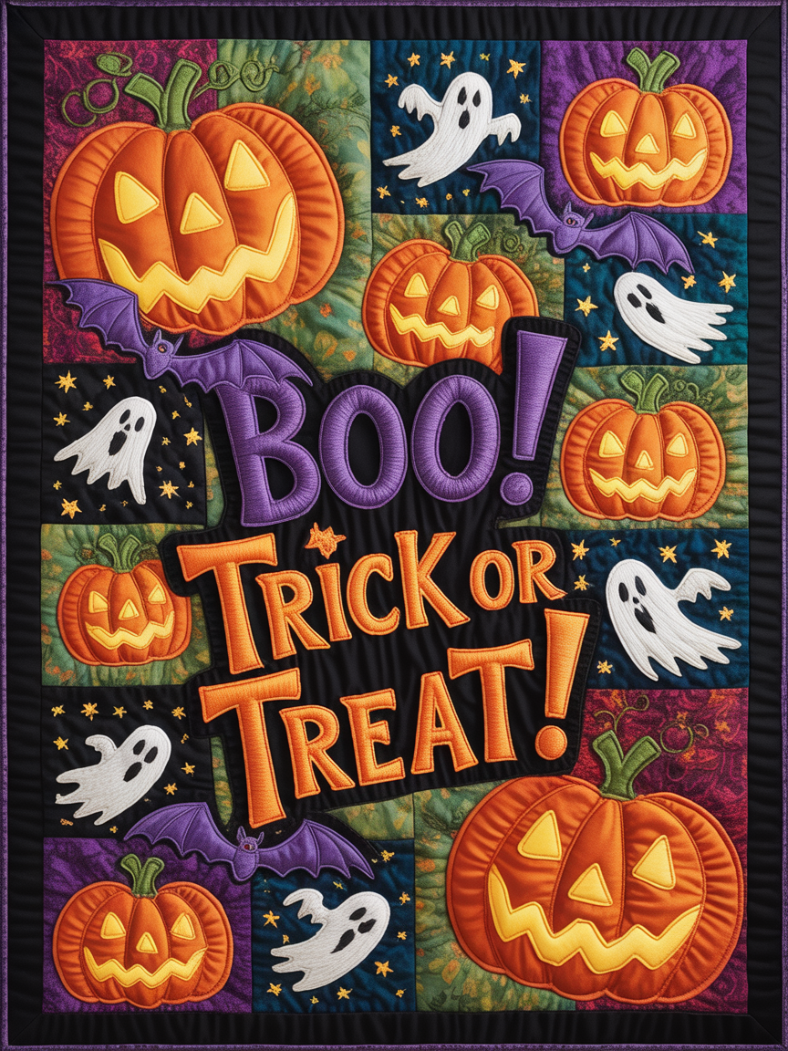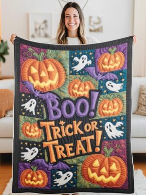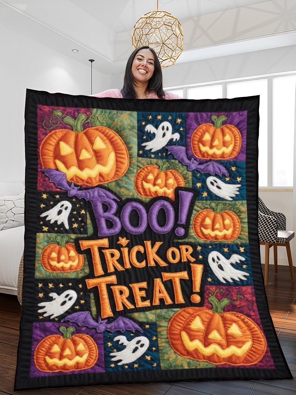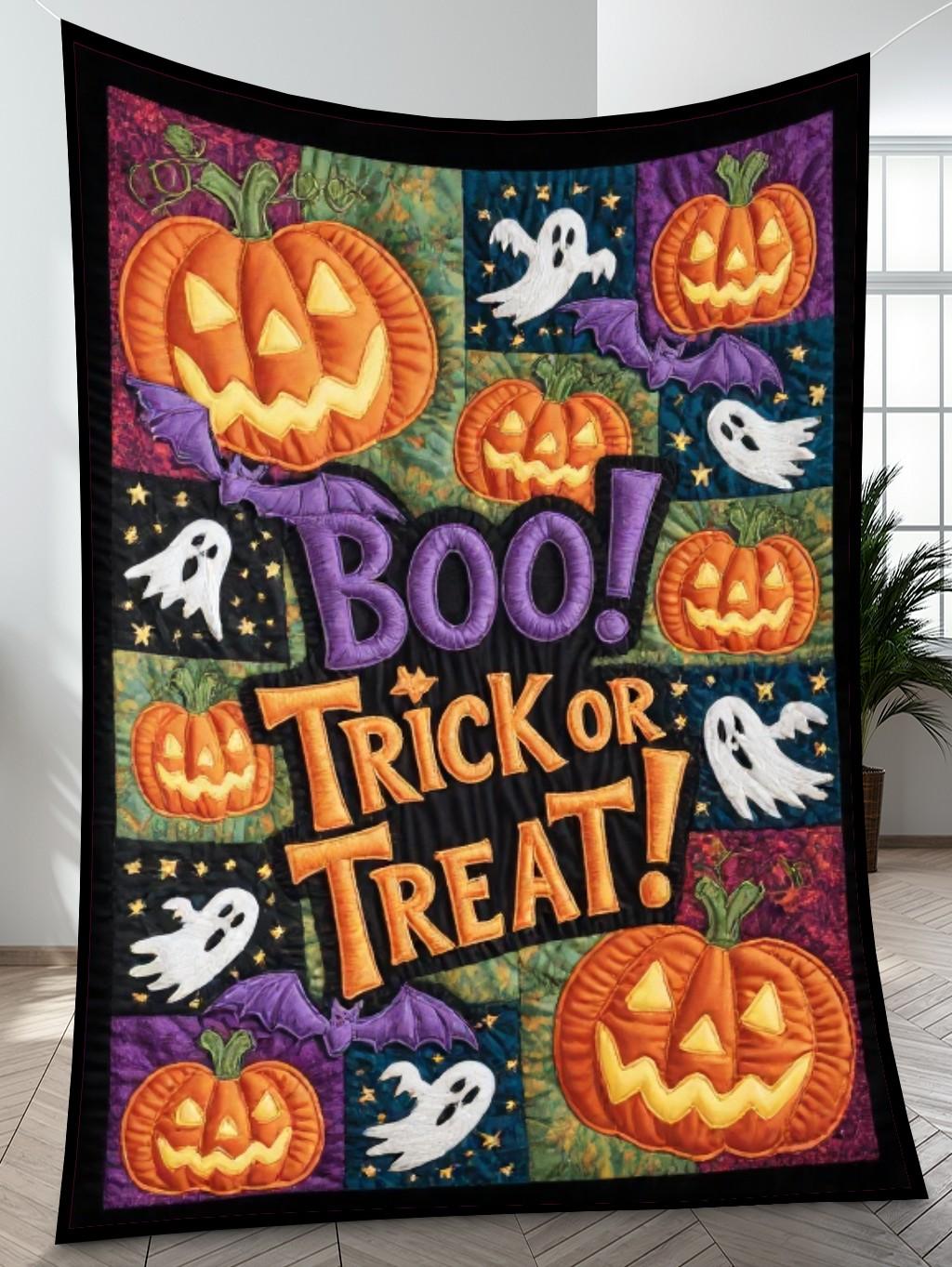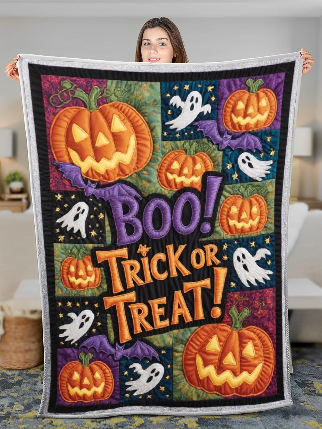 Elegant Halloween Quilted Blanket – Spooky Pumpkins, Haunting Ghosts, and Whimsical Bats...