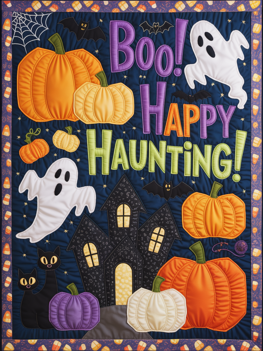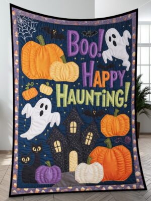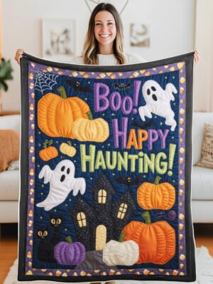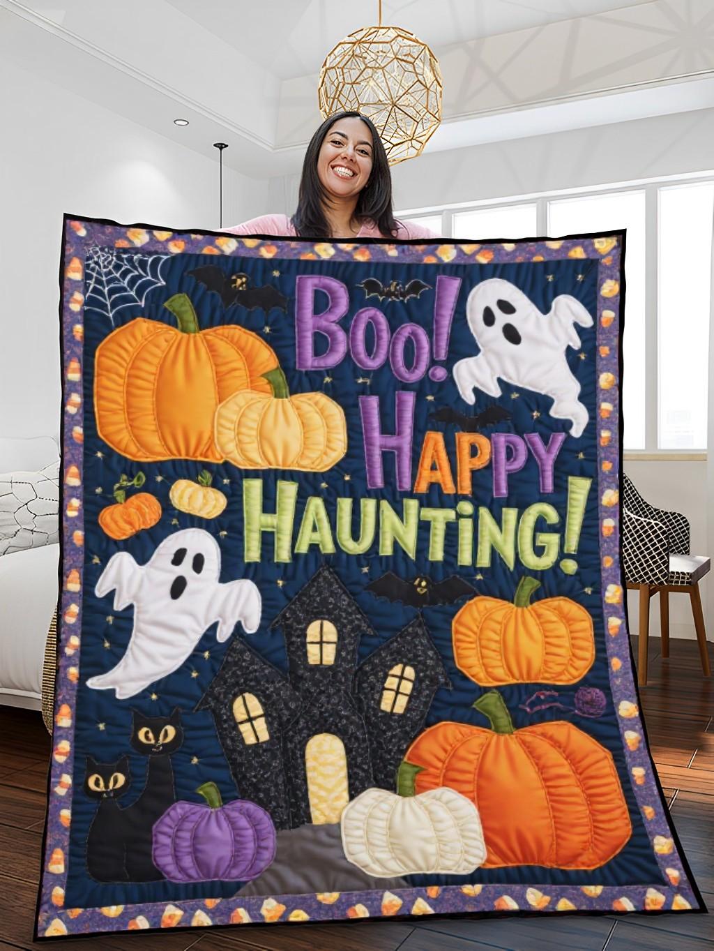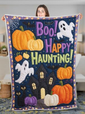 Elegant Halloween Quilted Blanket – Spooky Pumpkins, Whimsical Ghosts, and Bold Textured...