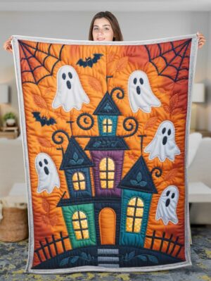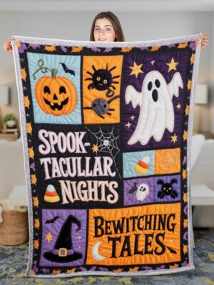 Elegant Halloween Quilted Blanket – Spooky Silhouettes, Pumpkins, and Ghostly Whispers with...