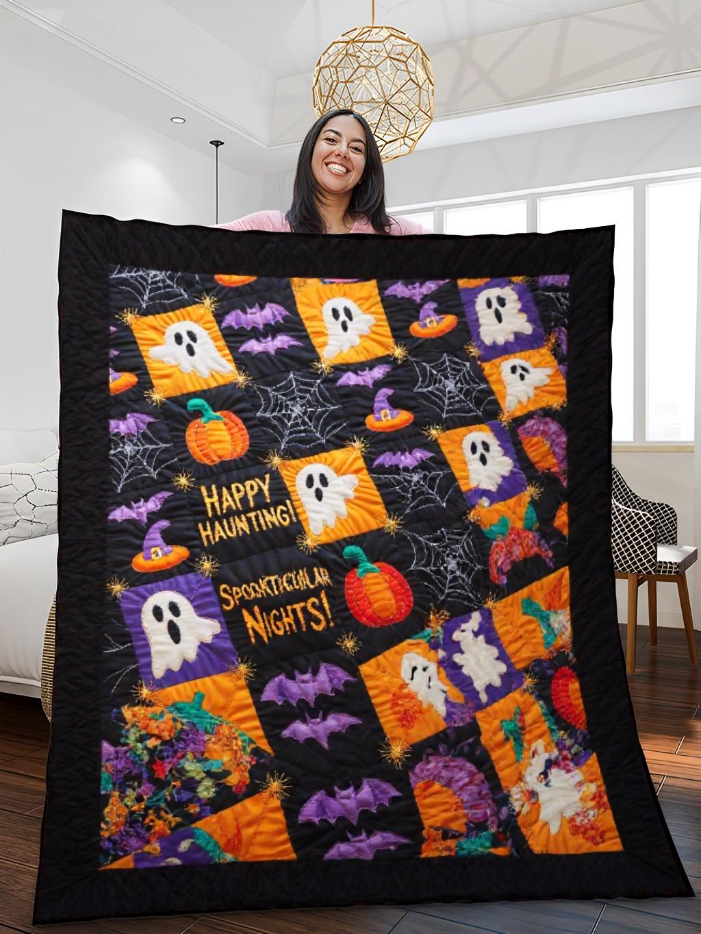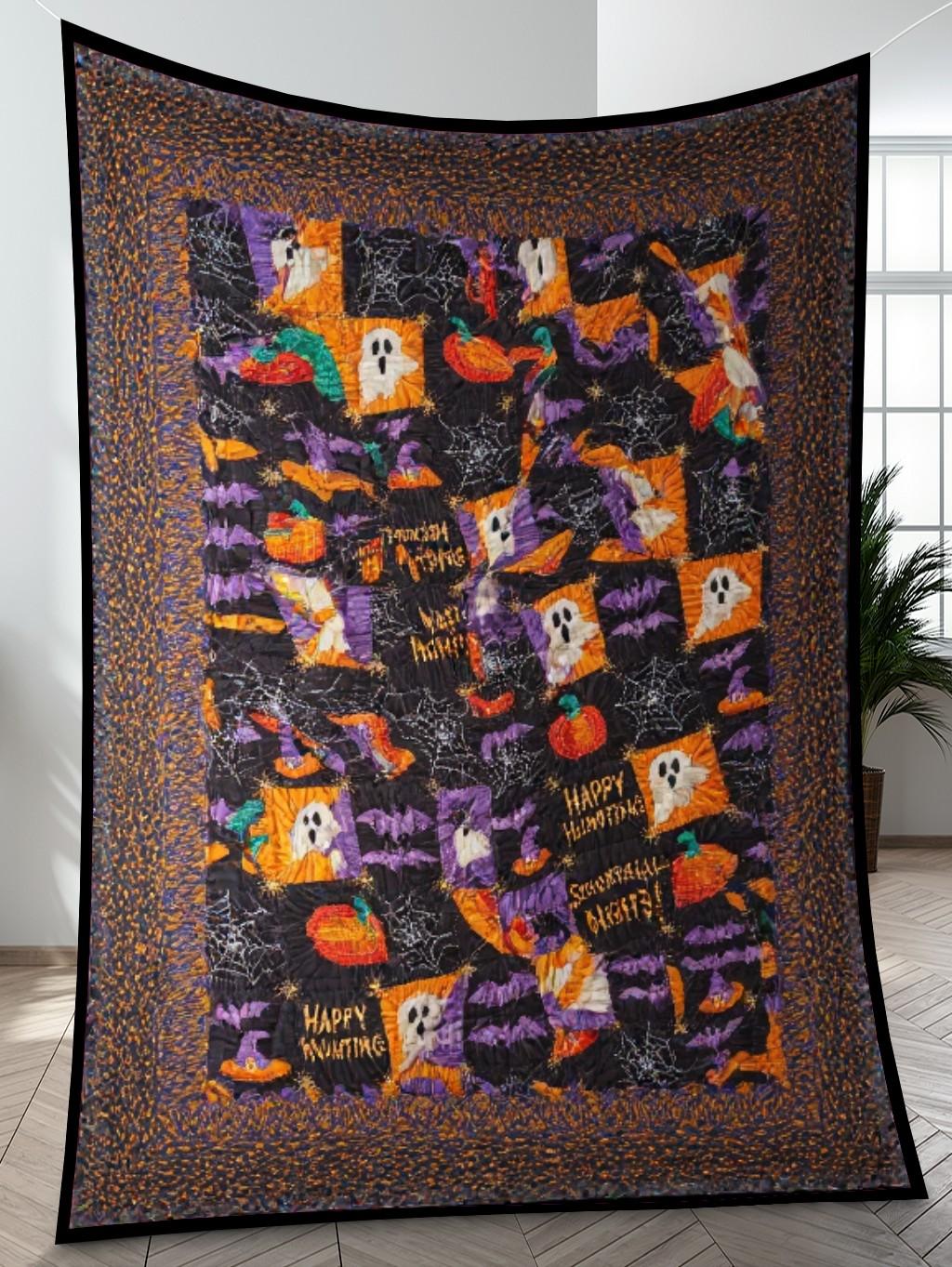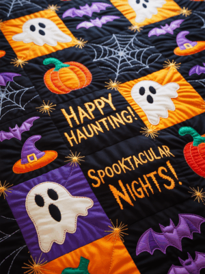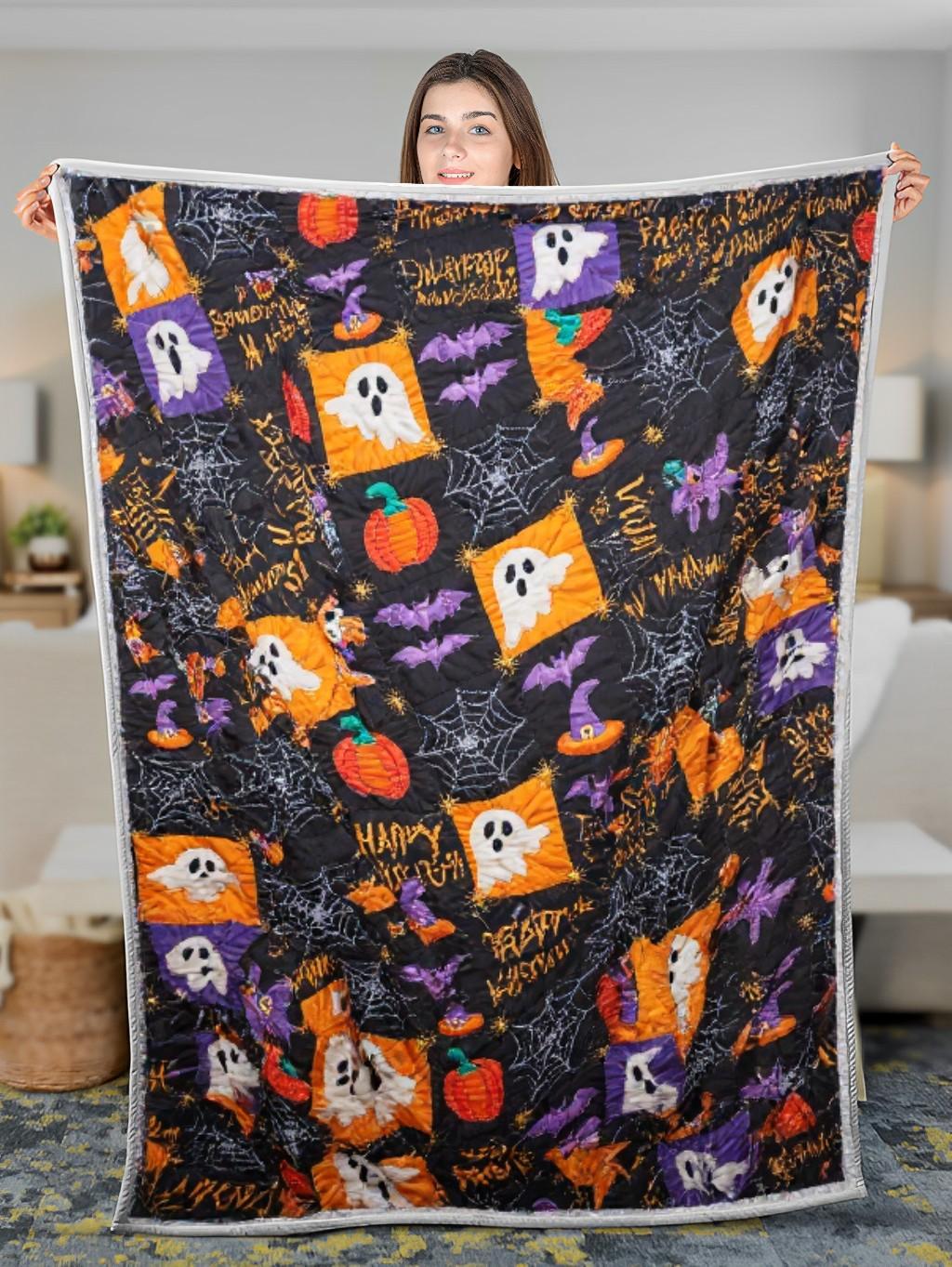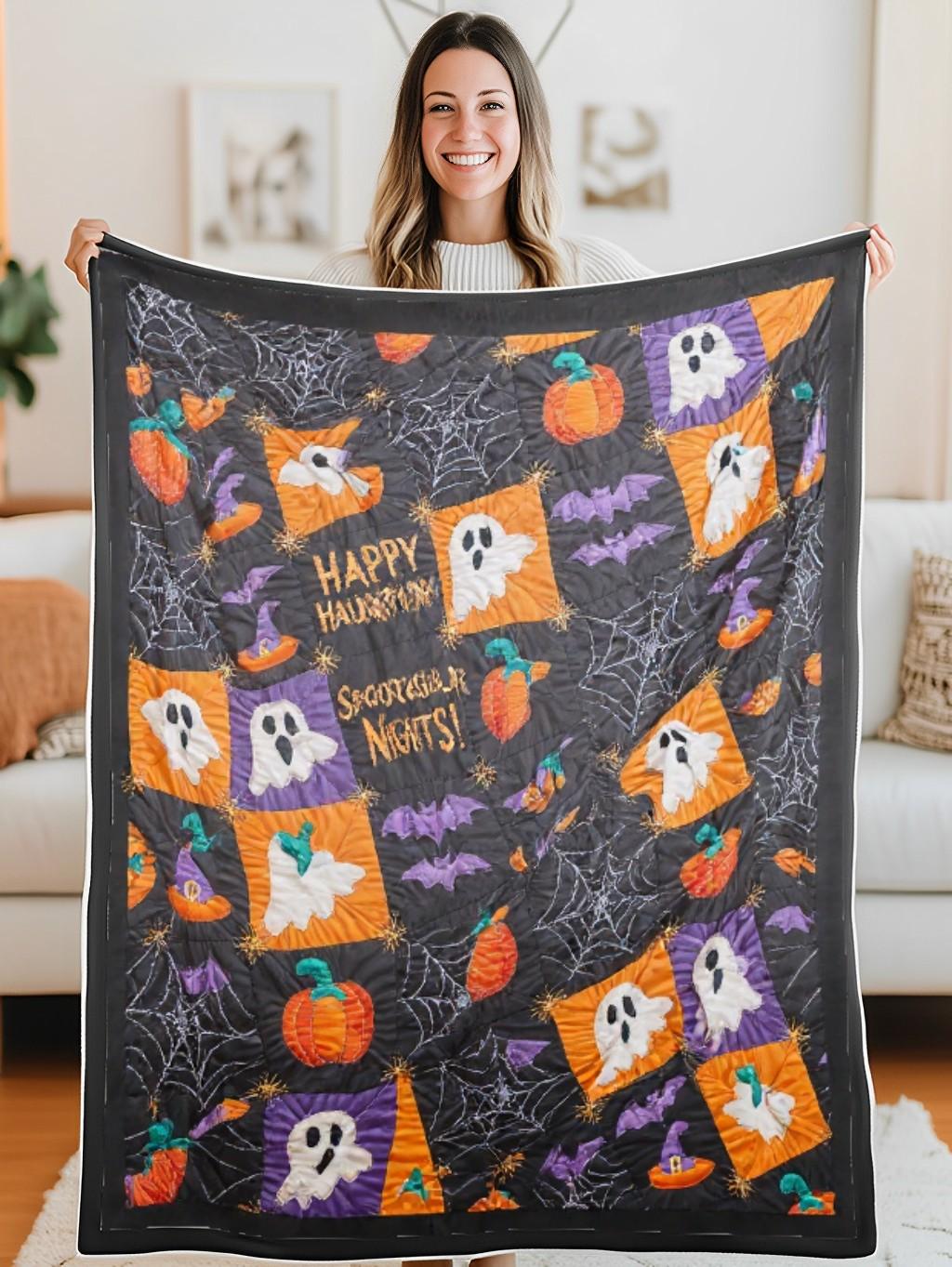 Elegant Halloween Quilted Blanket – Spooky Silhouettes, Whimsical Pumpkins, and Bewitching...