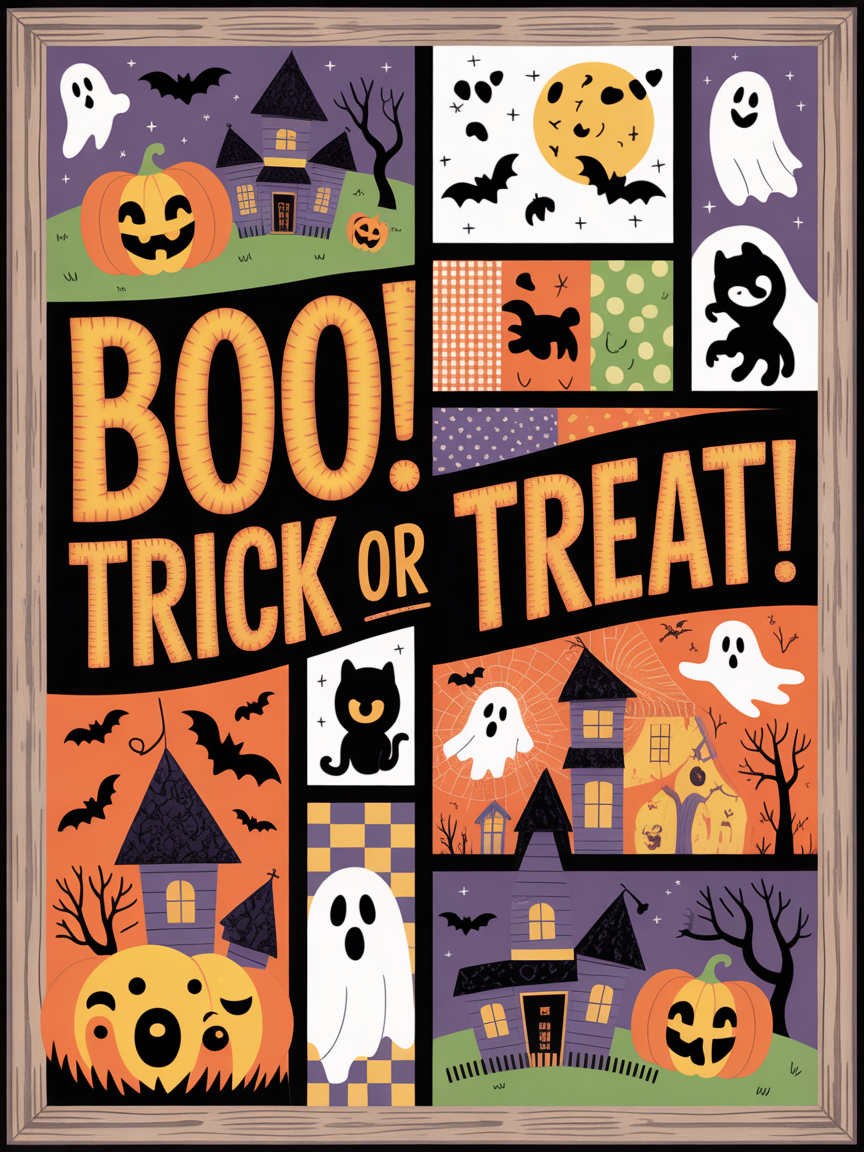 Elegant Halloween Quilted Blanket – Spooky Skeletons, Playful Pumpkins, and Ghostly Ghouls...