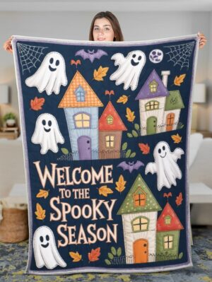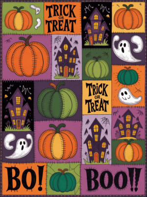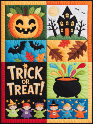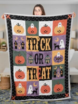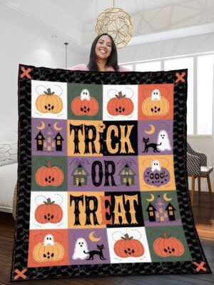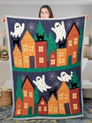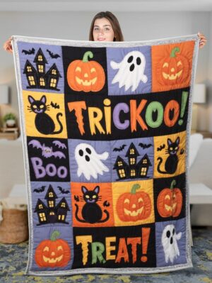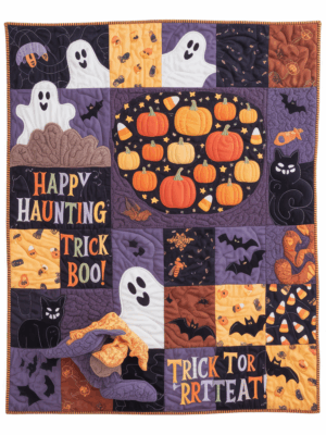 Elegant Halloween Quilted Blanket – Whimsical Ghosts, Exuberant Pumpkins, Spooky Black Cats,...