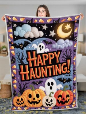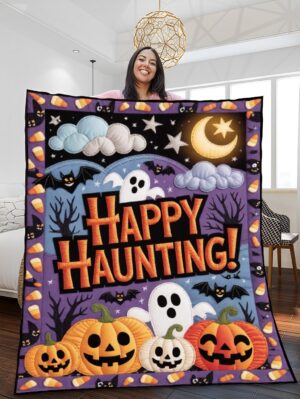 Elegant Halloween Quilted Blanket – Whimsical Pumpkins, Bewitching Bats, and Spooky Textured...