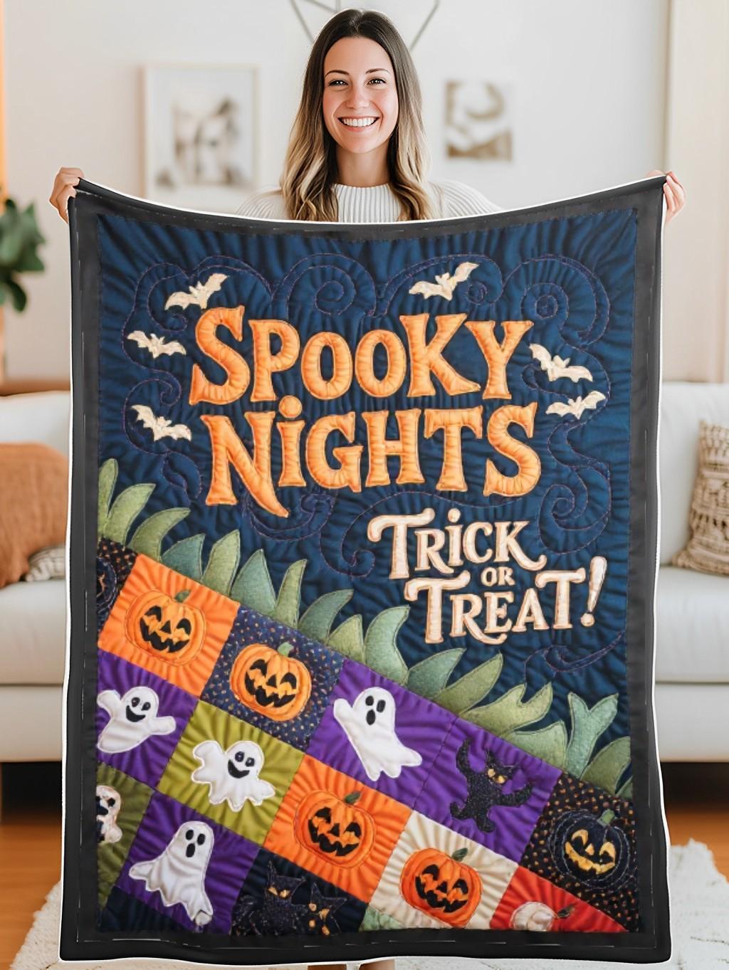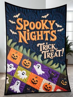 Elegant Halloween Quilted Blanket – Whimsical Pumpkins, Ghostly Apparitions, and Enchanting...