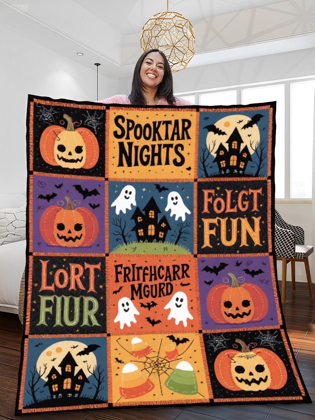 - Quilt blanket featuring a beautiful Halloween design