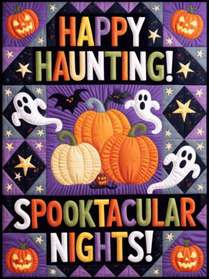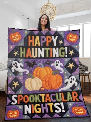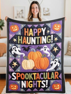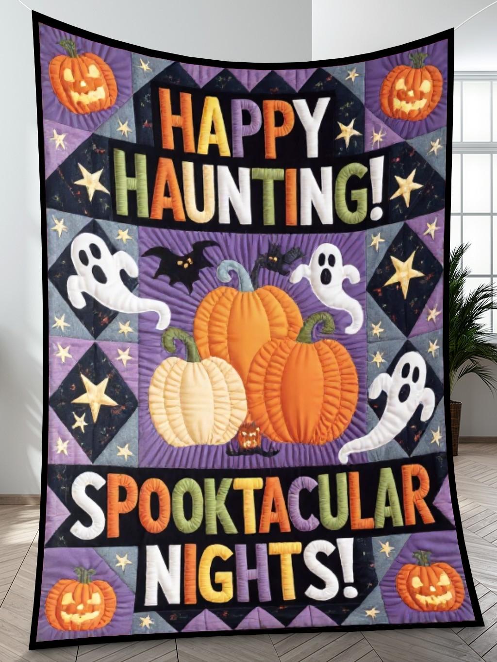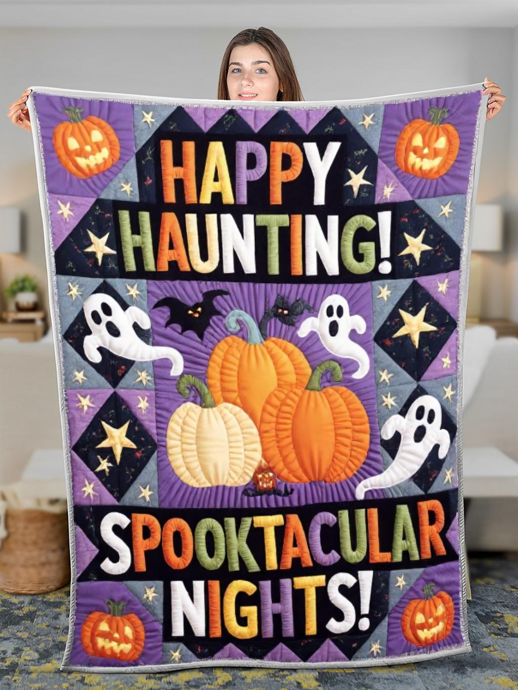 Elegant Halloween Quilted Blanket – Whimsical Pumpkins, Spooky Ghosts, and Bold Textured...