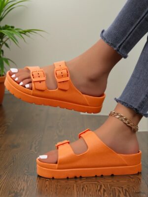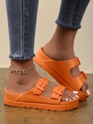 Introducing the Elegant Orange Women Flat Sandals Featuring Fashionable EVA Thick Sole for Elevated Comfort and Stability, designed with Adjustable Dual Straps. These chic sandals offer the perfect combination of style and comfort, making them an ideal choice for travel, beach adventures, and daily wear. With a cute and comfortable design, they are perfect for summer, beach trips, vacation, and spring outings. Embrace a trendy aesthetic while enjoying the luxury of these classy and stylish sandals this season.