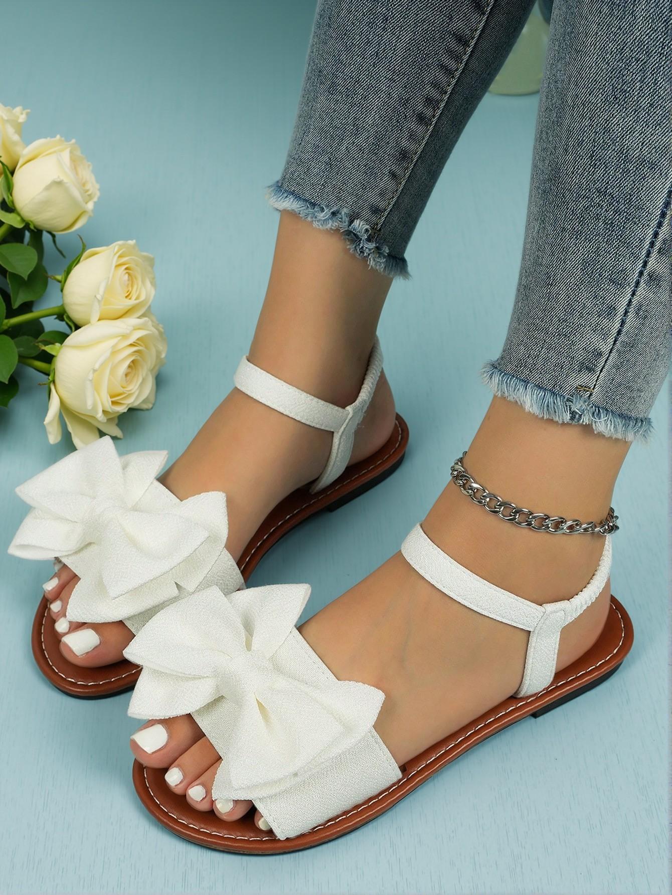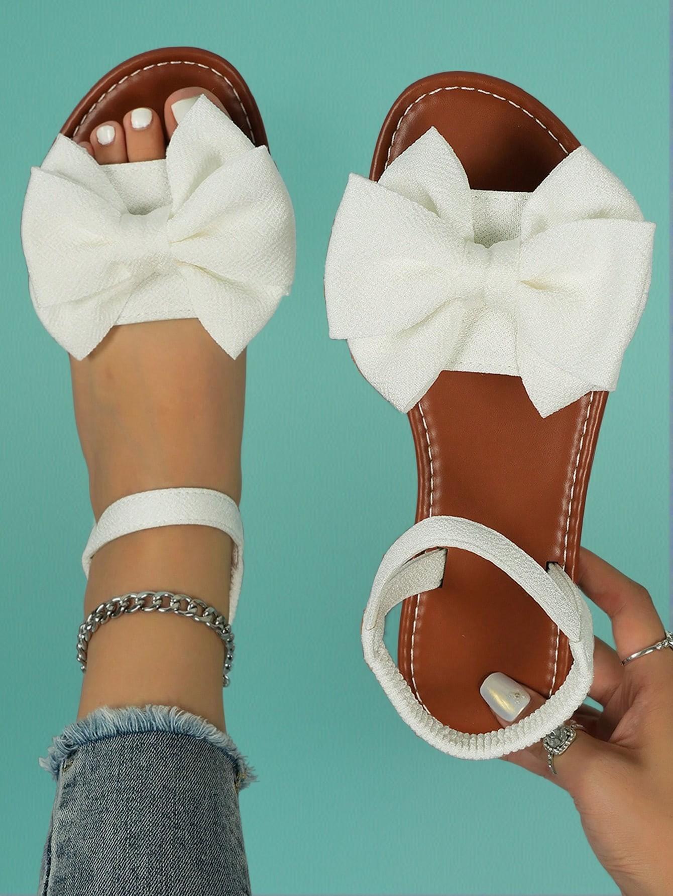 - Elegant white sandals with PU straps and bow accents