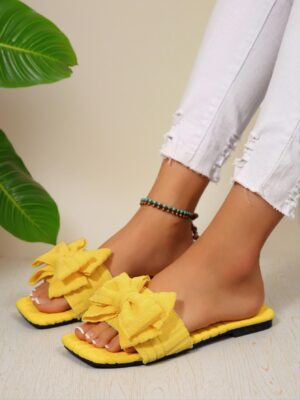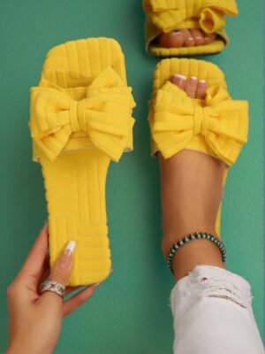 Introducing our Elegant Yellow Women Flat Sandals featuring Comfortable Casual Open Toe Slide Design with Adorable Bow Detail. These sandals offer a chic and stylish addition to your summer wardrobe, with a perfect fit for beach outings and vacations. Crafted for comfort and aesthetic appeal, they are available in plus sizes, making them perfect for every woman. Whether you’re lounging at the beach or exploring new destinations, these cute, comfortable, and luxury sandals will enhance your seasonal style effortlessly.