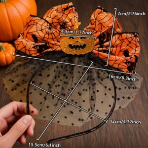 Halloween Pumpkin Headband – Vibrant Orange Spider Web Bow, Unisex Fascinator, Adjustable...