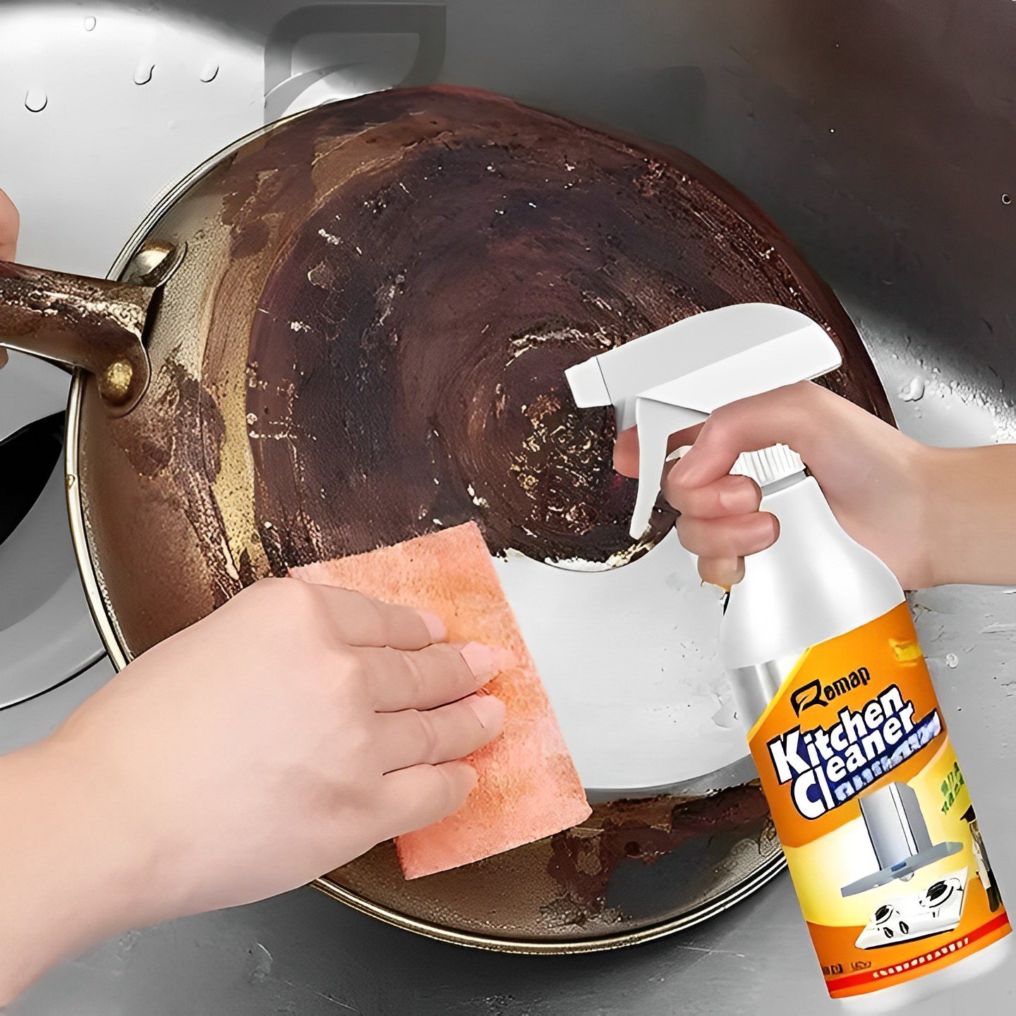 - This powerful all-purpose cleaner breaks down and removes stubborn stains, sticky residues, and grease stains with a rich lather. It leaves your kitchen surfaces sparkling clean in just minutes.
